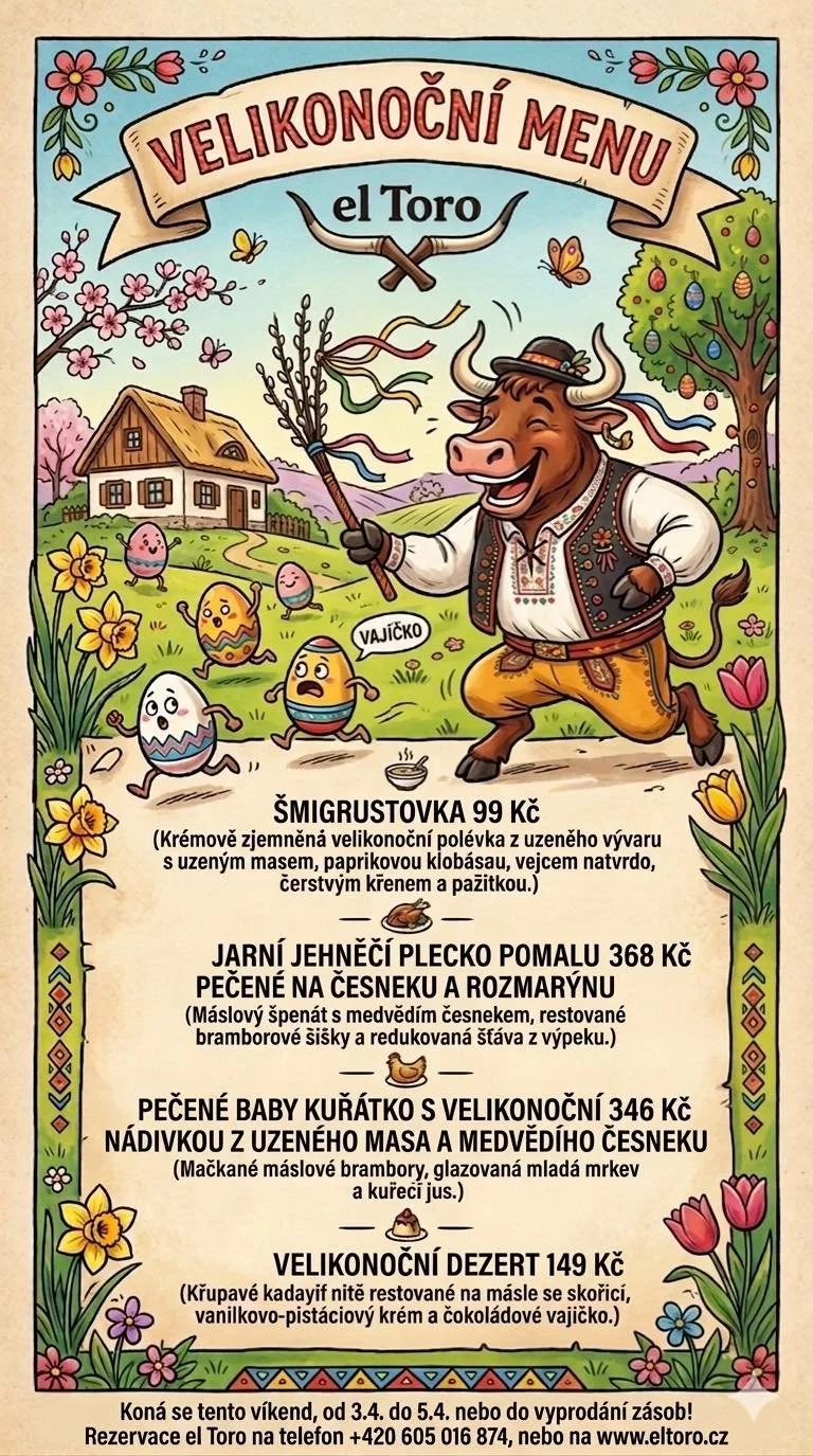 Speciální velikonoční menu podáváme od 3. 4. do 5. 4. 2026 (nebo do vyprodání).